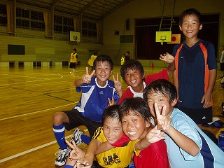 親さん、指導者入り混じって子供と各学年ごとサッカーの試合をします。普段ストレスのたまっているお母さんたちの発散の場です。お母さんやお父さんとサッカーをしている子供たちは真剣そのもの。とっても楽しそうです。 |
