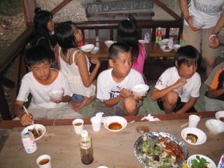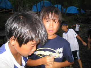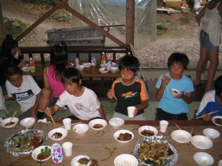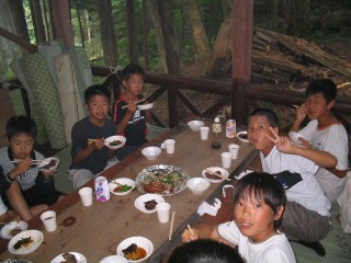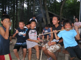 | 8月12日と13日で昨年と同じく長者の里へ行きました。無事、台風も反れ(少し夕立は来たけど)まずまずの天気でした。 今年はお母さんの参加が多く大変な盛り上がりを見せました。とても楽しいキャンプにでした。 |