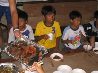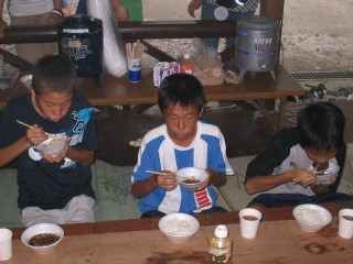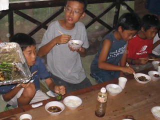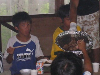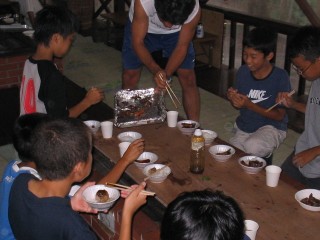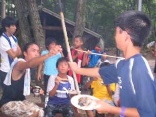 | ビンゴゲームと晩御飯。ビンゴゲームは中学生が仕切ってくれました。アリガトー。焼肉はコーチが。熱い中ご苦労様でした。 | ||||
