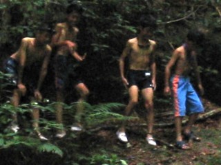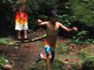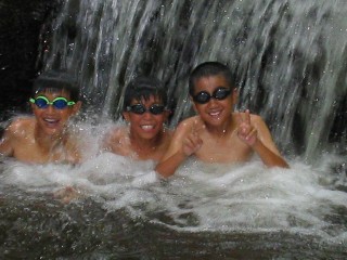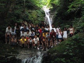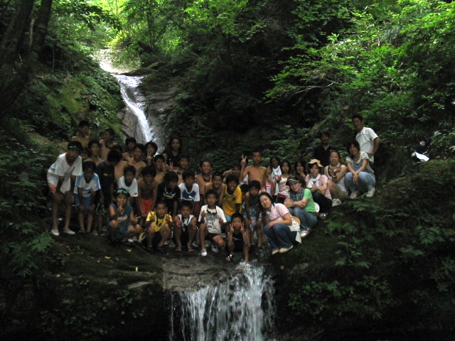 | 今年は滝に行ったでみんなで写真を撮りました。吉井コーチと小川コーチがみんなに飛び込みのお手本を見せてくれました。 | ||||