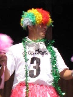 | 今年の6年は仮装大会。ほら、レディースより色っぽいでしょ。 | |||