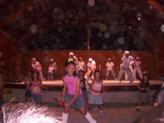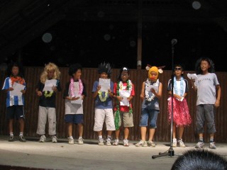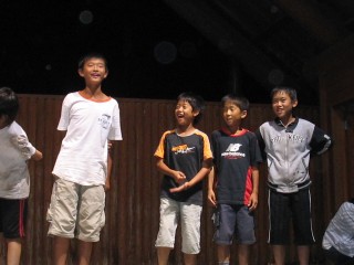 | ↑まずはキャンプファイヤーのリハーサルから。台詞はちゃんと覚えてきてるのかな? | |||