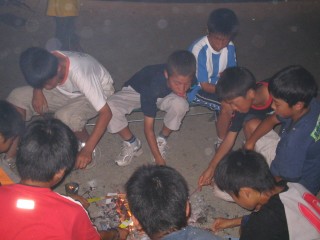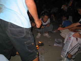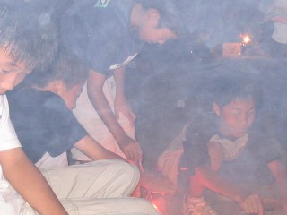 | いっせいにみんなでするとかなり煙たい。でもみんなですると、とっても楽しい。 | |||