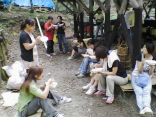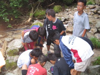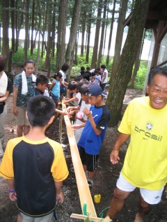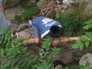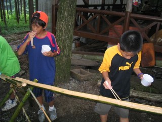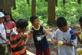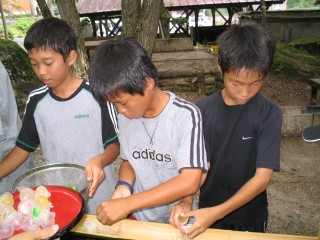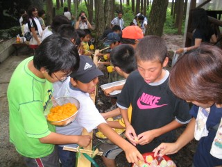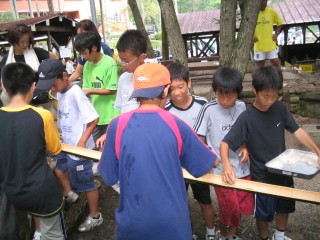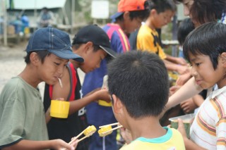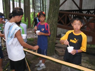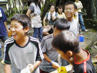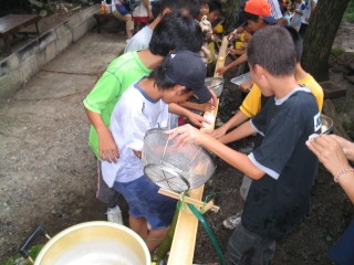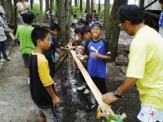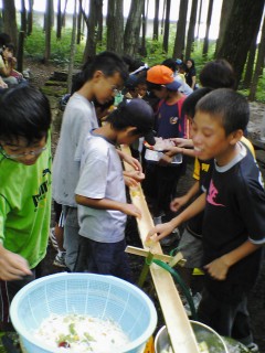 | 今年は流しそうめんをしました。にぎやかで面白かったね。もう少し食べたかったなぁ。最初は6年が流して低学年が食べました。 | |||