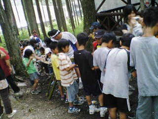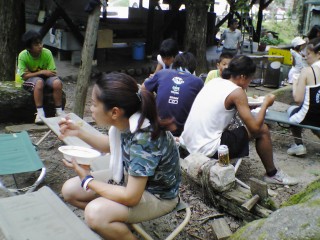| お昼ごはんは恒例のカレーライス。河合コーチがつきっきりでグツグツ。お母さんたちも心配でなべにつきっきり。でも毎年河合コーチが味付けしてるんだよね。 | |||