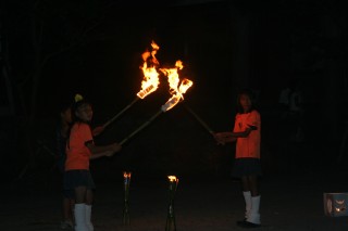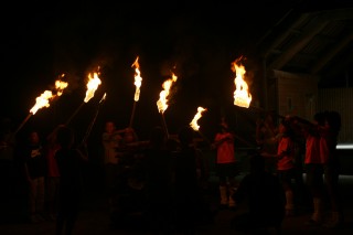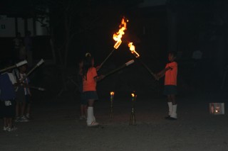 | 櫓へ点火。 | なかなか きまってるでしょ。 | ||