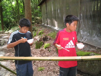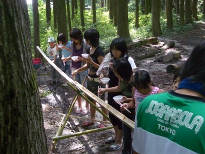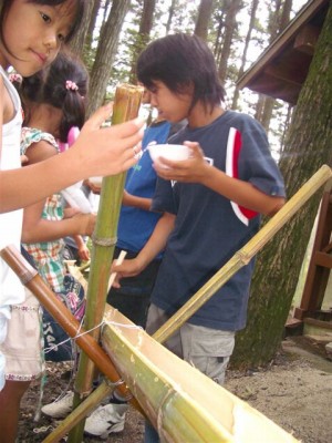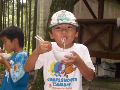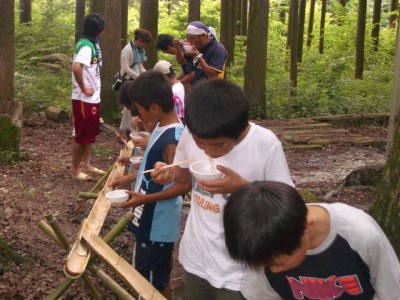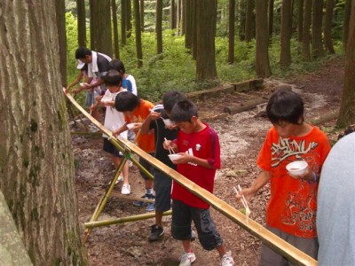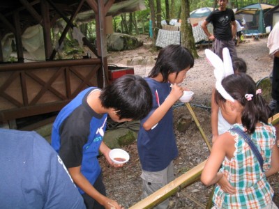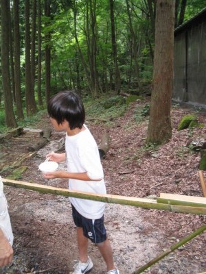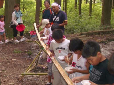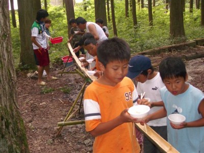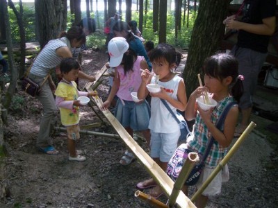 | ビンゴデ〜ス。 | 流しそうめん | まずは女の子から。 | 秘密兵器のフォーク持参。 |