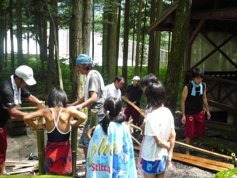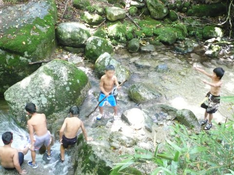 | 8月8日と9日で長者の里へ行きました。好天に恵まれ、、無事全てのプログラムを実行しました。 今年は若い指導者にたくさん来てもらったので年寄りは楽をさせてもらいました。そろそろ世代交代ですね。これからも若い担い手に頑張ってもらいましょう。 |
