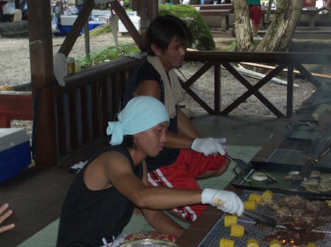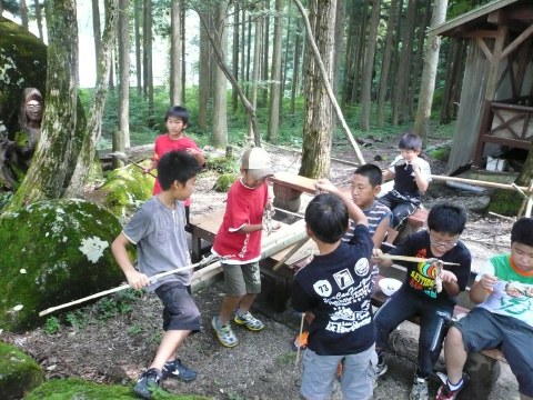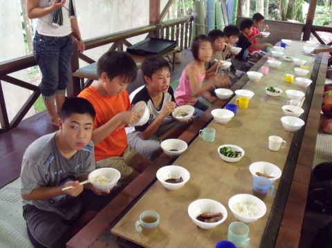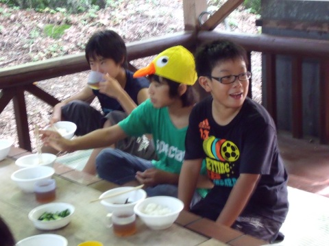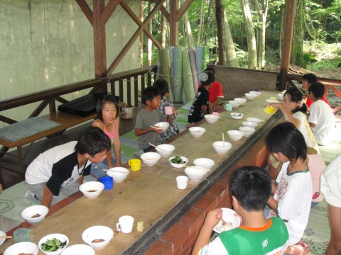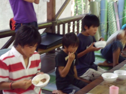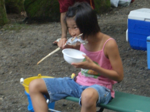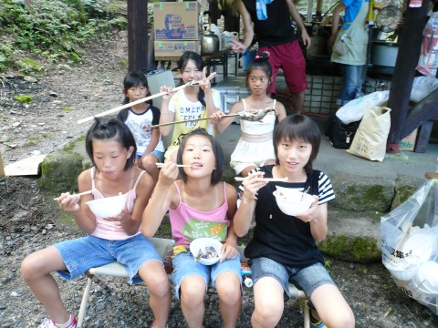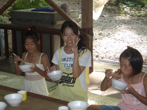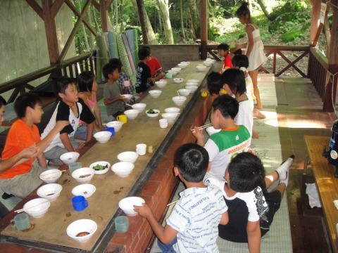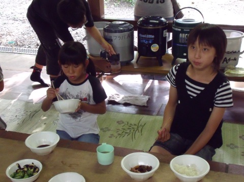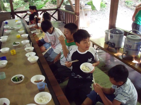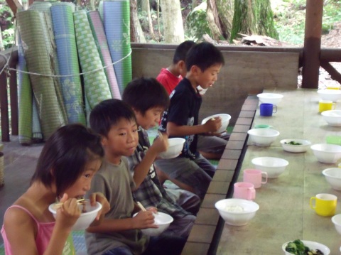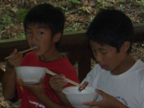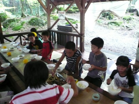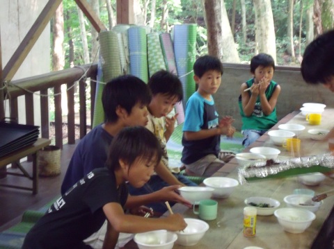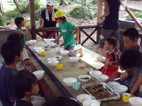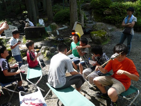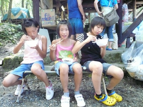 | 自分で捕った魚を焼いて食べる。君たちはもぅ、森の住民だ。 | ||||