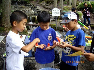 | 8月7日8日と恒例の夏季合宿で長者の里へ行ってきました。 天候にも恵まれ楽しく過ごすことができました。 今年は親さんの参加者が少なく心配でしたが、無事全行程を終了しました。皆さんお疲れ様でした。 写真を掲載しましたのでチームリーダーさんに欲しい写真の番号を伝えてください。 データーがいる人はデーター希望とお伝えください。 |