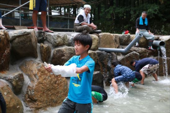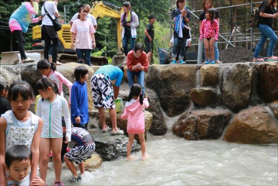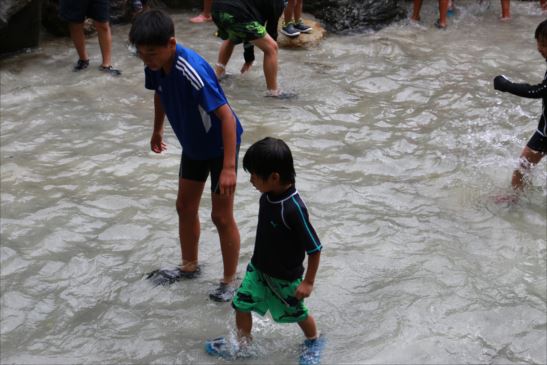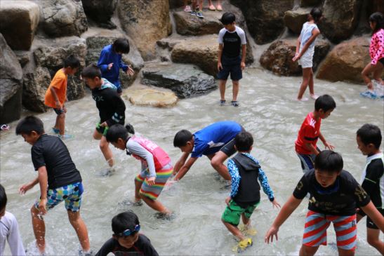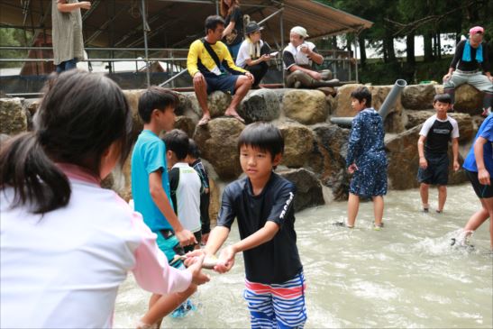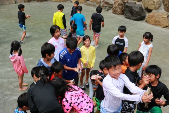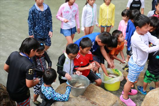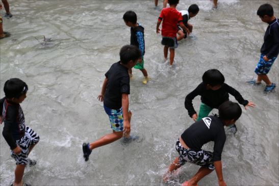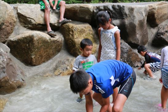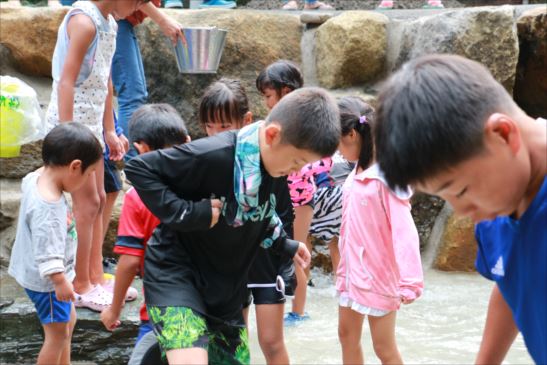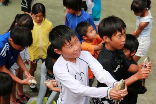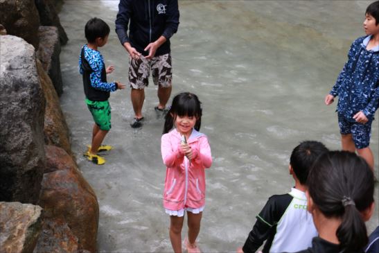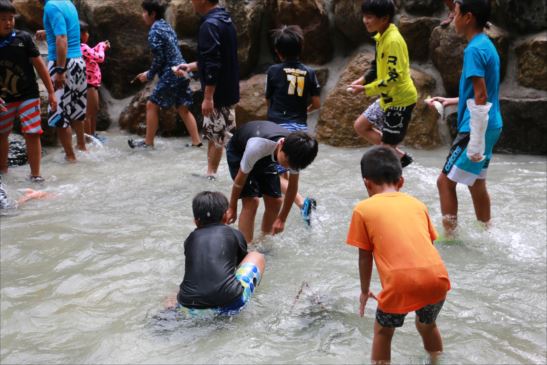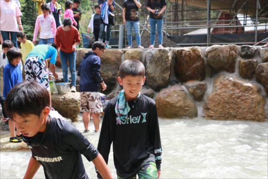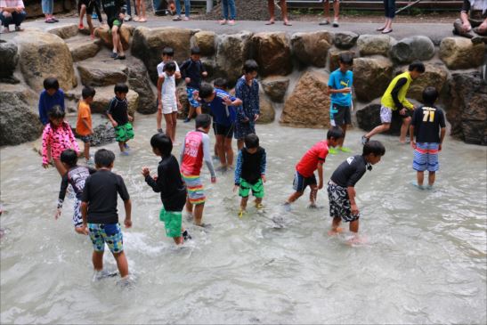 下が綺麗なのでみんなすぐにつかみ終えました、なので、2度目の放流!