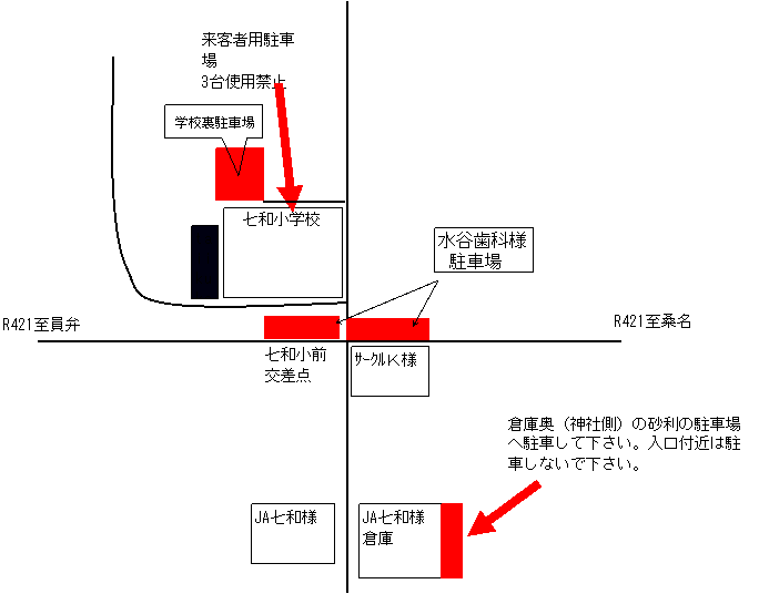 | ・ 各チーム7台以内でお願いします。それ以上の台数になる場合は水谷歯科様又はJA七和様駐車場へ | |||||||||||||||||||||||||||||||||||||||||||||||||||||||||||||||||||||||||||||||||||||||||||||||||||||||||||||||||||||||||||||||||||||||||||||||||||||||||||||||||||||||||||||||||||||||||||||||||||||||||||||||||||||||||||||||||||||||||||||||||||||||||||||||||||