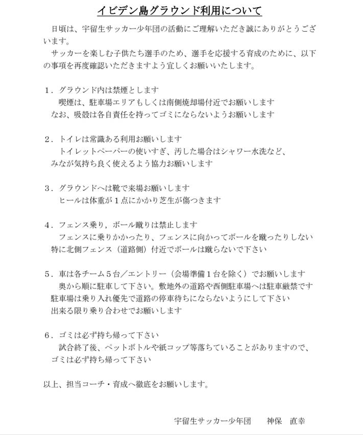 ●今後、グラウンド内は禁煙とします。灰皿を持ち込んでの喫煙も禁止とします。子供達の周りで喫煙する事は良くない事です。よろしくお願いします。